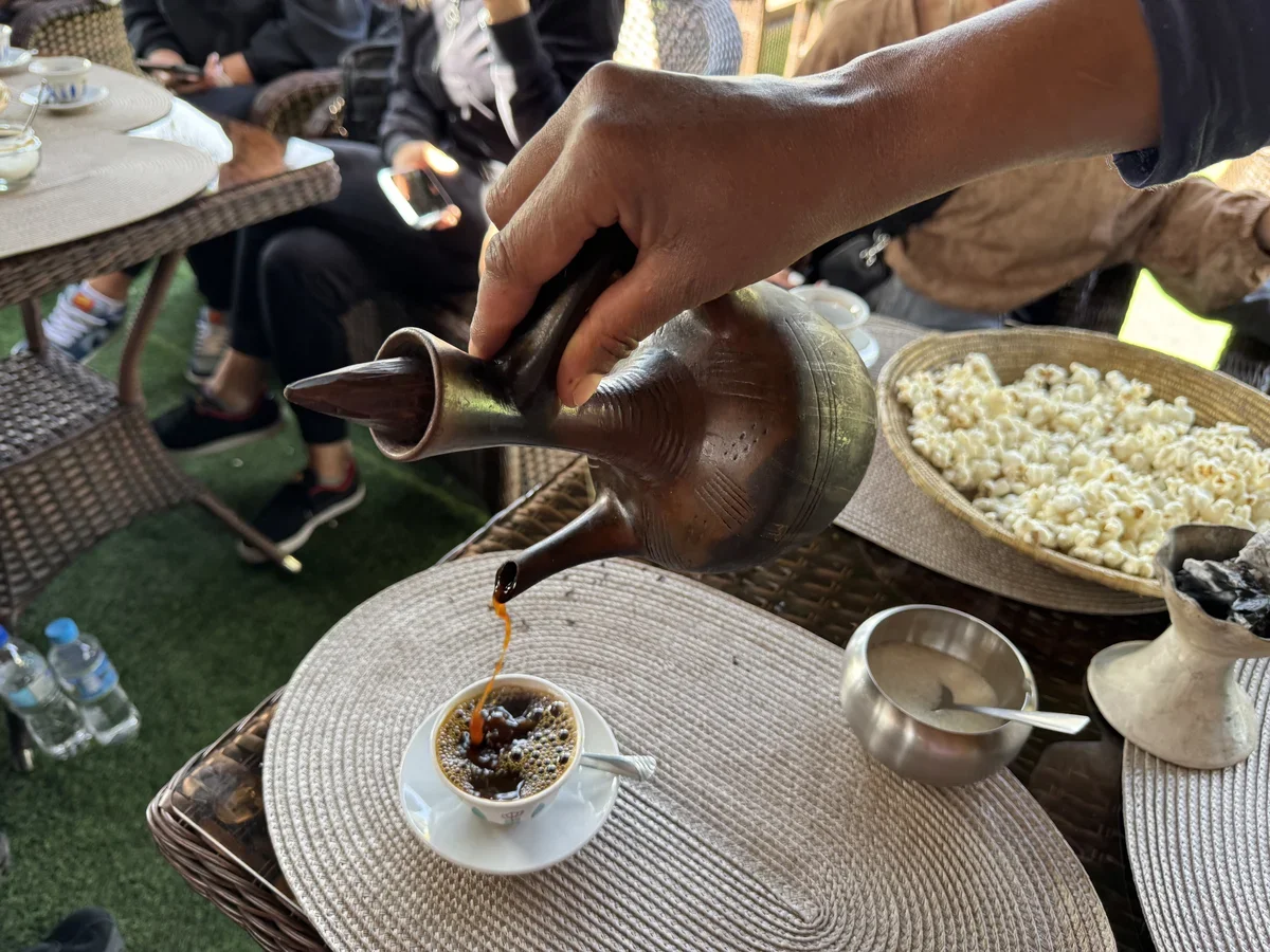 Группа турагентов завершила визит в Национальный парк традиционной кофейной церемонией – медленным и медитативным ритуалом, во время которого местная жительница обжаривала зерна, измельчала их и заваривала при гостях. Напиток оказался крепким, с отчетливой кислинкой чистой арабики – именно таким, каким его любят здесь.