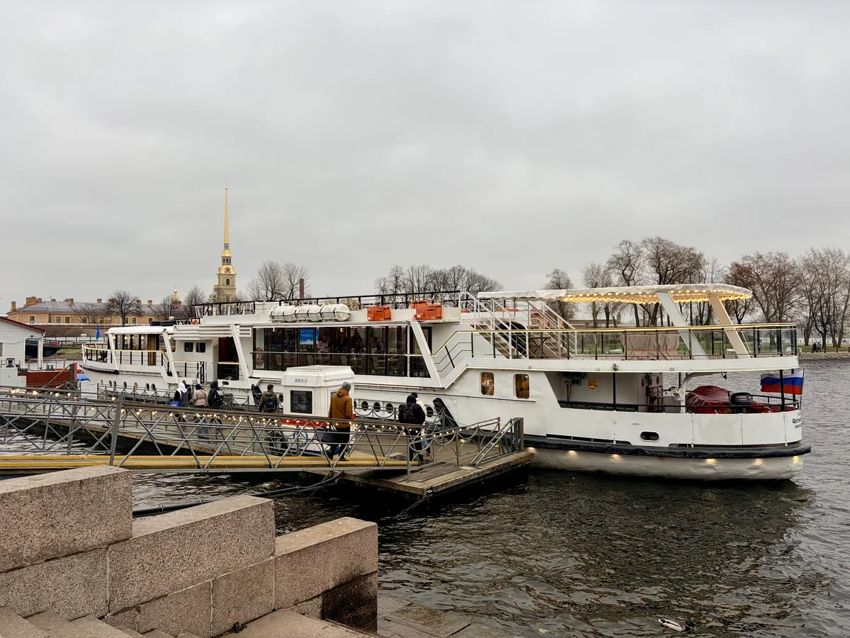 Теплоход отправляется от причала «Петропавловская крепость» на Мытнинской набережной, 3. Судя по информации, опубликованной на сайте компании, при аренде теплохода для проведения частных мероприятий есть также возможность сделать прогулку по маршруту от Крестовского острова до Лахта-центра.
