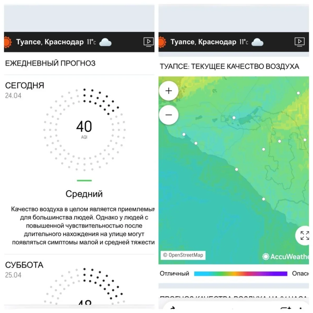 Уровень качества воздуха в Туапсе 24 апреля