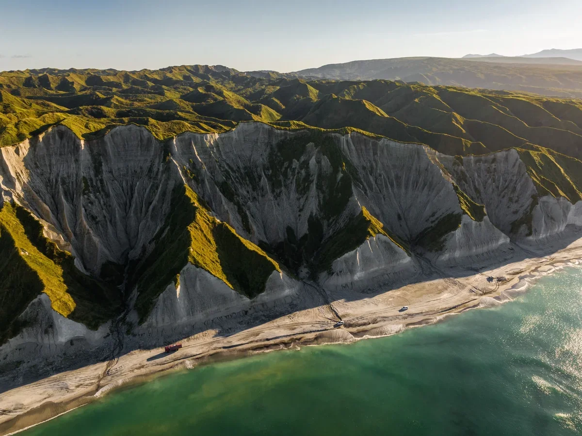 На 30 км вдоль побережья Охотского моря тянутся скалы из вулканической пемзы ослепительно-белого цвета.