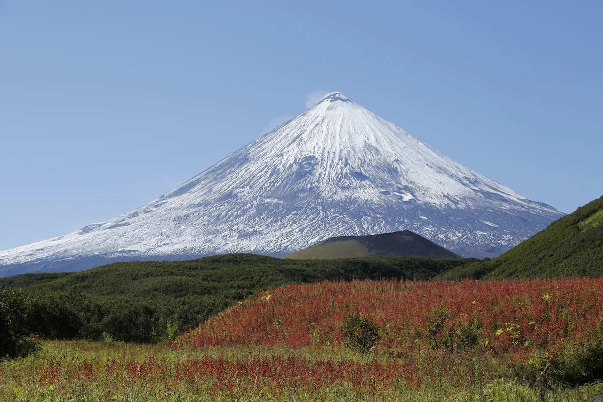 Самый высокий действующий вулкан Евразии и главный символ Камчатки.