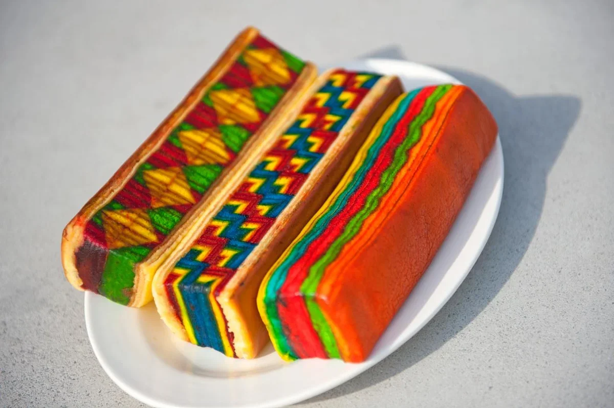 - Кек Лапис Саравак (Kek Lapis Sarawak). Красочный многослойный торт с уникальными узорами и вкусами. Обычно подают во время фестивалей и праздников