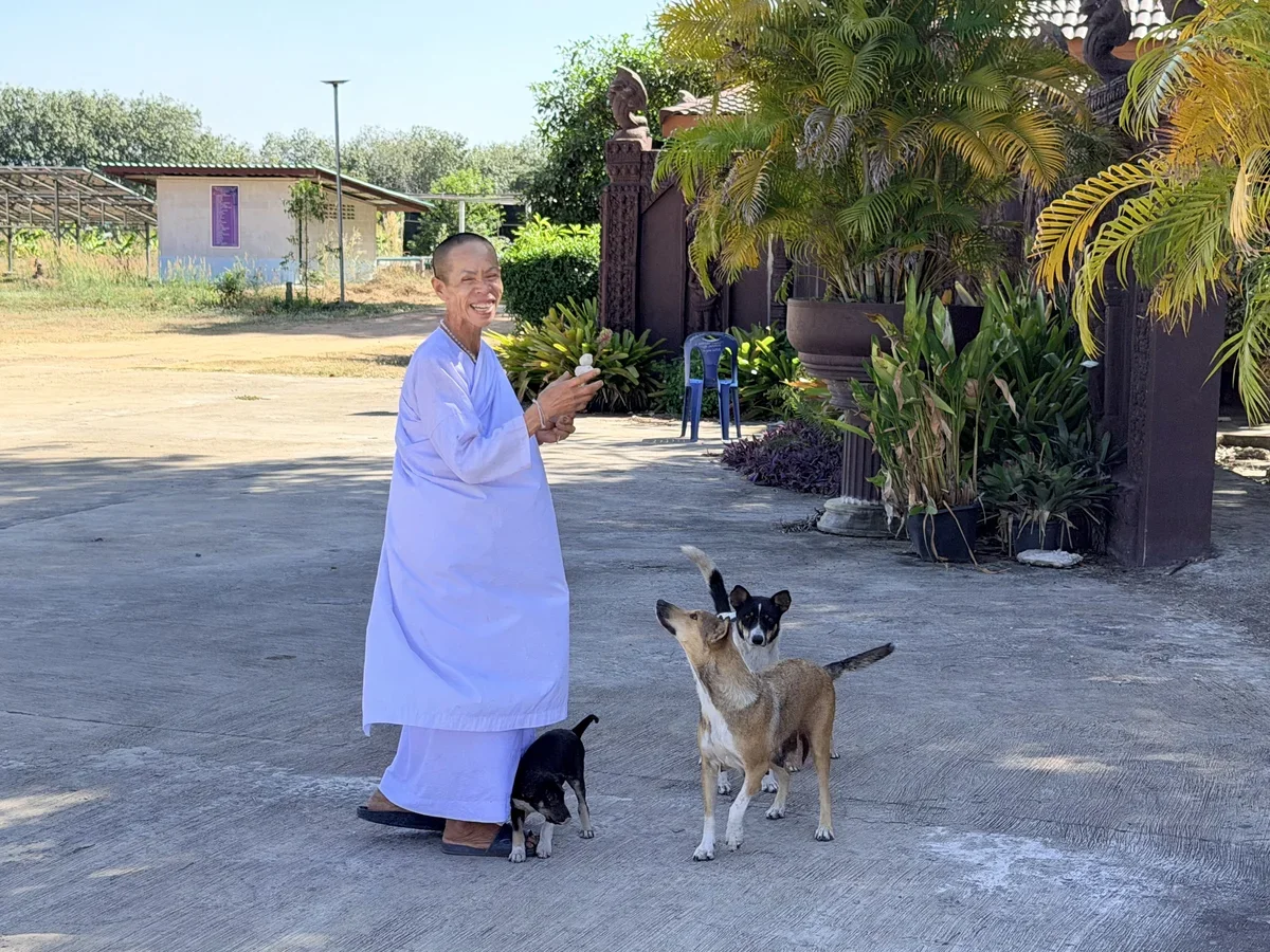 Ват Бан Санам Чай поразил архитектурой в кхемерском стиле и цветом – он полностью коричневый. А еще в этом храме нет монахов, только монахини. Они и ниточку сайсин на удачу повяжут, и по храму проведут, и с местными собаками и кошками познакомят. Смотришь на все это и попадаешь в мир, полный умиротворения и покоя.