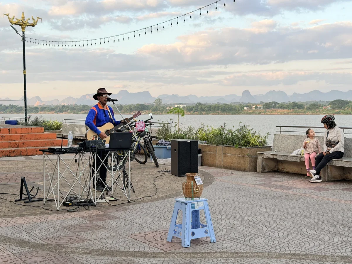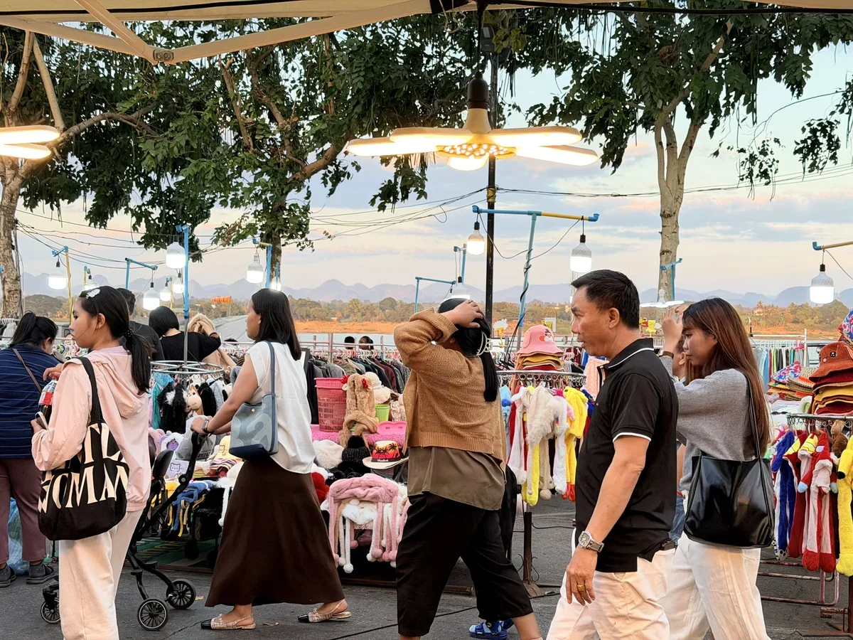 По выходным на набережной разворачивается базар, где можно купить уникальные традиционные украшения и одежду из Таиланда и Лаоса, послушать уличных музыкантов, запустить в небо воздушного змея, полюбоваться через Меконг видами Лаоса и, конечно, попробовать интересные блюда.