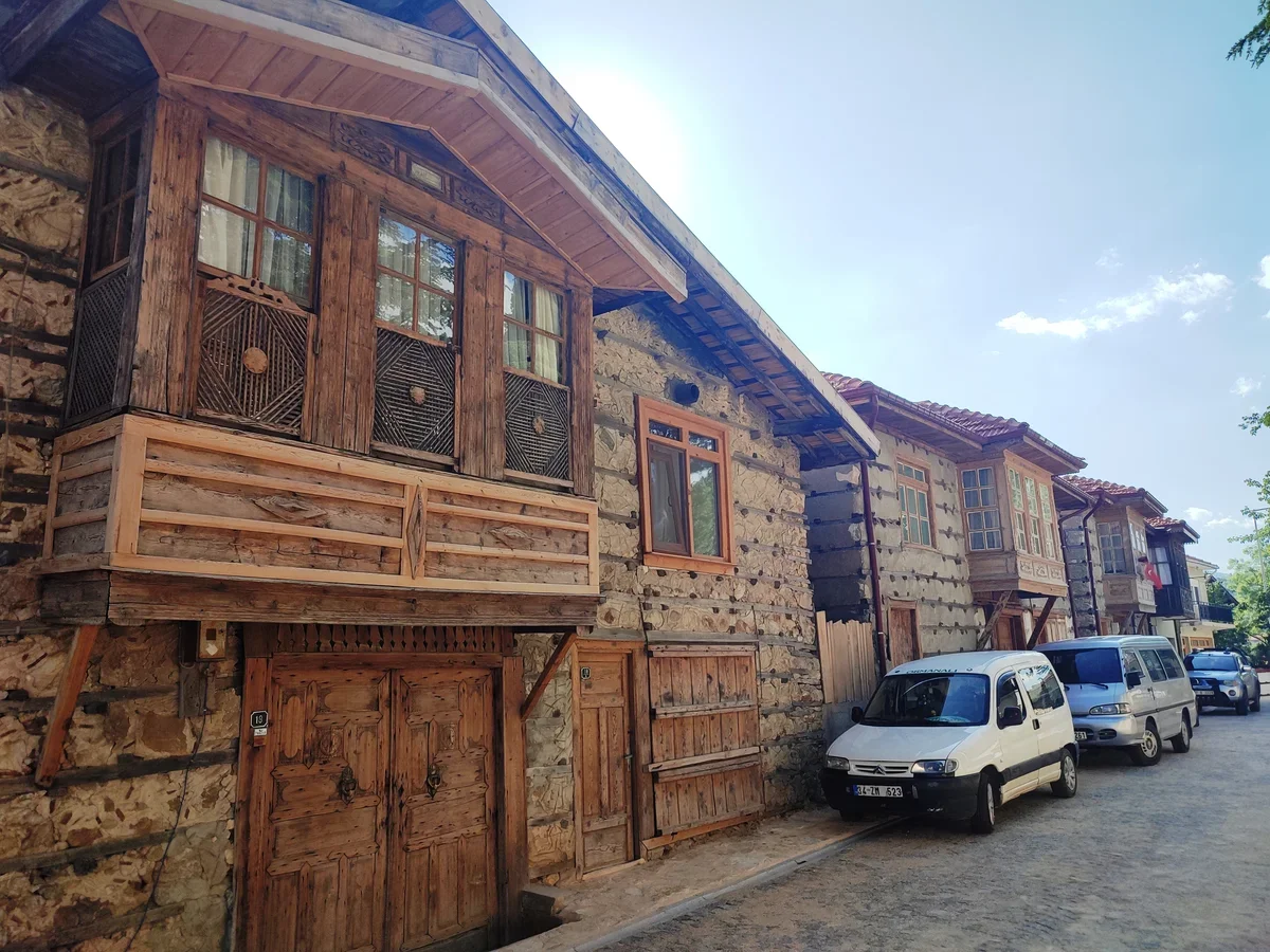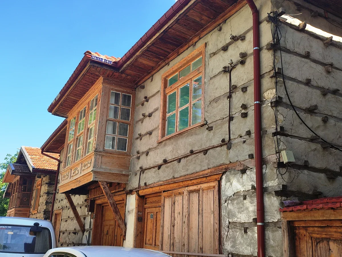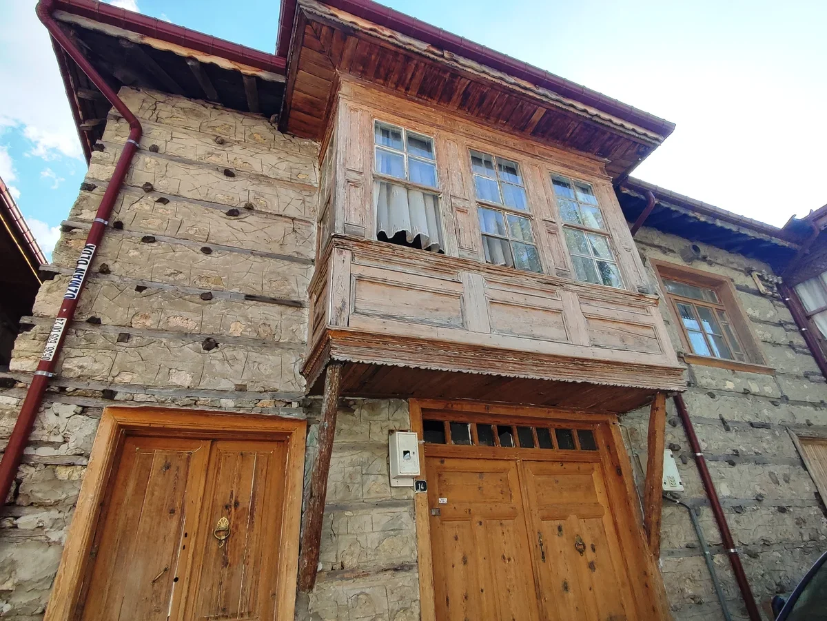На самом деле грубая каменная кладка с деревянным каркасом выглядит необычно для Турции, но типичные узорчатые османские деревянные балконы на домах не дают забыть, где ты находишься.
