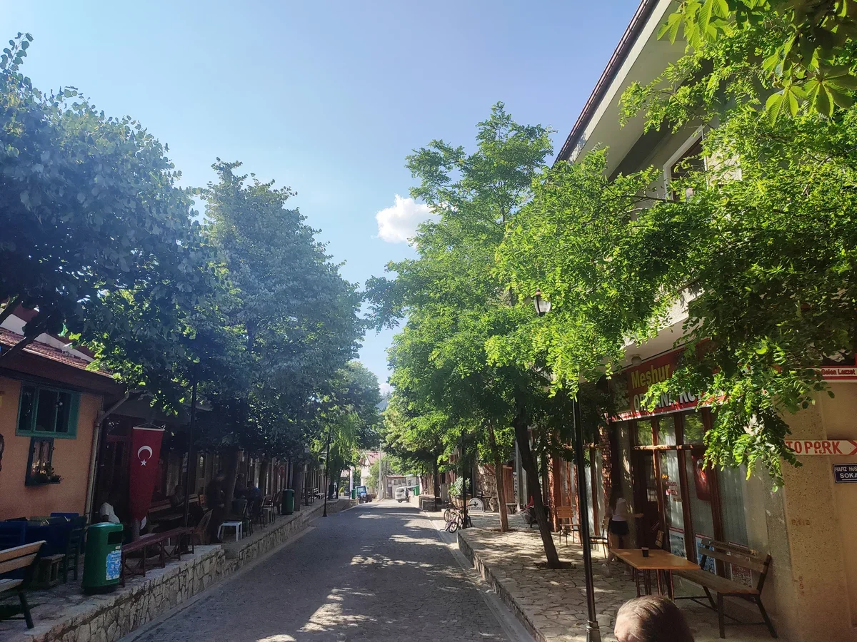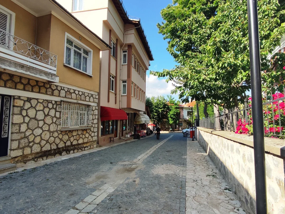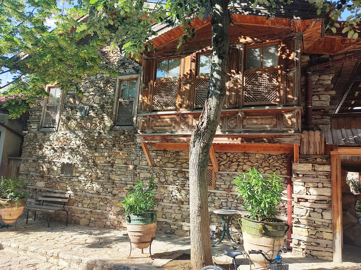 На самом деле грубая каменная кладка с деревянным каркасом выглядит необычно для Турции, но типичные узорчатые османские деревянные балконы на домах не дают забыть, где ты находишься.