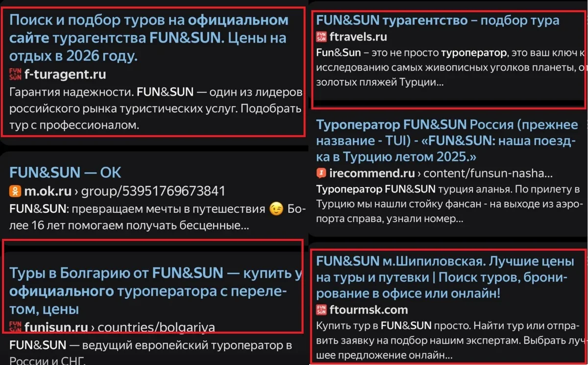 «При этом туроператор ведет активные рекламные кампании, направленные на привлечение клиентов, и часть трафика уходила на такие сайты. Это вводило туристов в заблуждение и влияло на доверие к бренду и работе агентской сети. Для выработки единого подхода был проведен опрос франчайзинговой сети, по итогам которого большинство партнеров поддержали блокировку сайтов-клонов. Вопрос был вынесен на совет директоров франчайзинга, где согласовали единую позицию и зафиксировали договоренности», – подчеркивают в FUN&SUN.