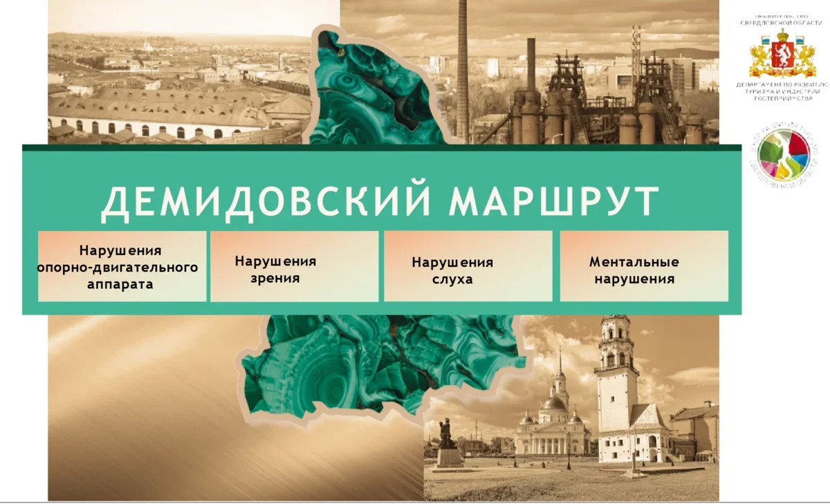 «Демидовский маршрут» (получил статус национального в 2022 году), адаптированный под маломобильных туристов, включает три новых объекта показа: это исторический мультимедийный парк «Россия – Моя история» в Екатеринбурге (обеспечено безбарьерное передвижение), Центр инклюзивного труда и творчества АНО «Благое дело» в пос. Верх-Нейвинский (проводятся специализированные экскурсии и мастер-классы для людей с ментальными нарушениями), а также Музей природы в Нижнем Тагиле, в котором есть тактильные экспонаты.