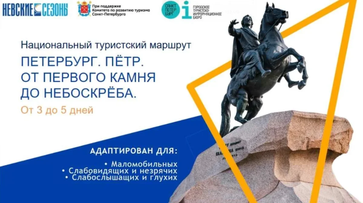 Маршрут «Петербург. Петр. От первого камня до небоскреба», получивший федеральный статус в 2023 году, также теперь доступен для маломобильных граждан, слабовидящих и глухих туристов. Проект сохранил основную идею – показать развитие города от основания до наших дней, но объекты показа были специально подобраны с учетом критериев доступности.