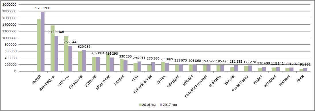 Рис. 1. ТОП-20 въездных рынков Российской Федерации из числа стран дальнего зарубежья.
