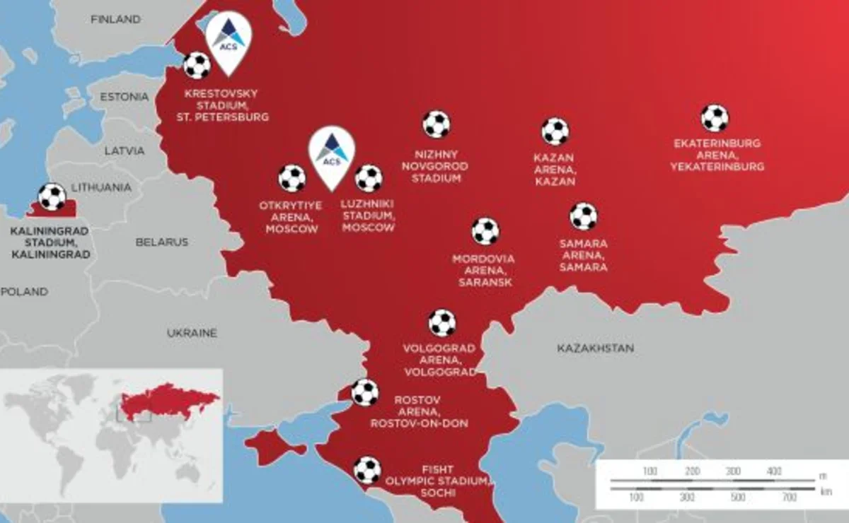 Маршрутная сеть регулярных авиарейсов между городами-организаторами Чемпионата мира по футболу 2018 года |