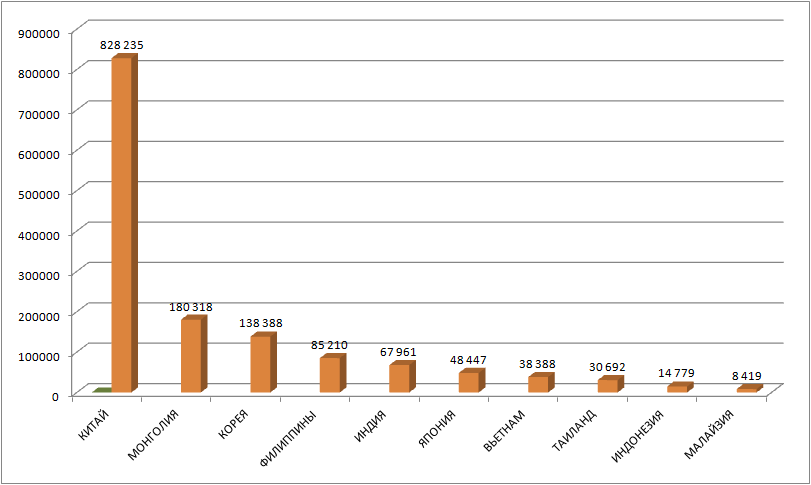 ТОП-10 въездных рынков Восточной, Южной и Юго-Восточной Азии в I полугодии 2018 года. Данные погранслужбы ФСБ РФ