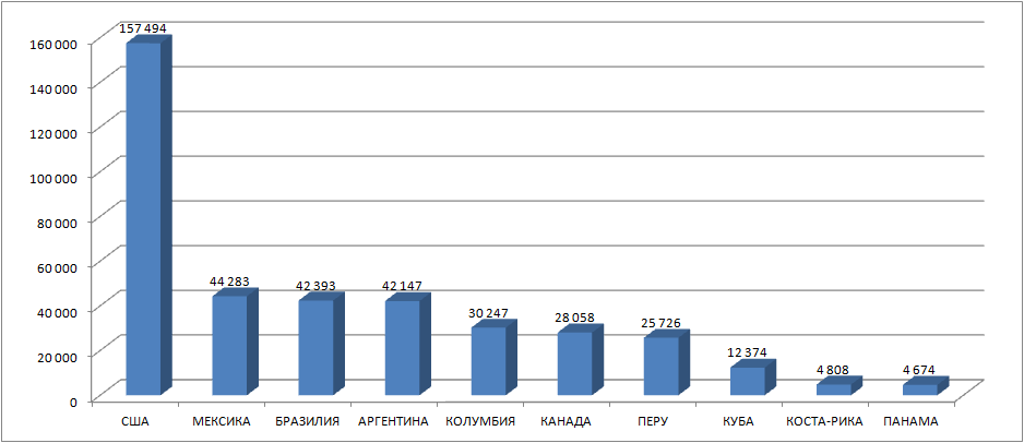 ТОП-10 въездных рынков Северной, Центральной и Южной Америки в I полугодии 2018 года. Данные погранслужбы ФСБ РФ
