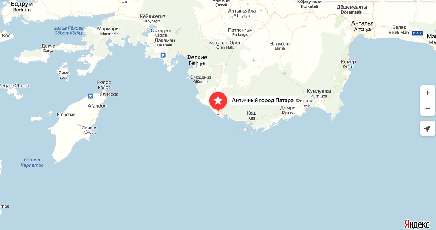 Российским туристам Патара, которая находится в 70 км от Фетхие и в 110 км от Даламана, будет интересна и тем, что здесь около 270 года родился и впоследствии получил образование будущий епископ Миры, более известный как Николай Чудотворец.
