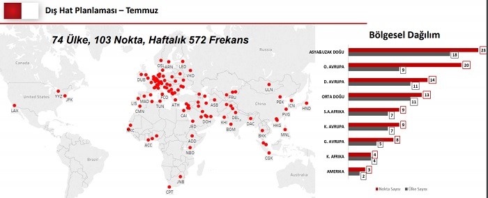 В июле в полетной географии THY уже 572 частоты в неделю в 103 пункта назначения в 74 страны мира, включая Испанию.