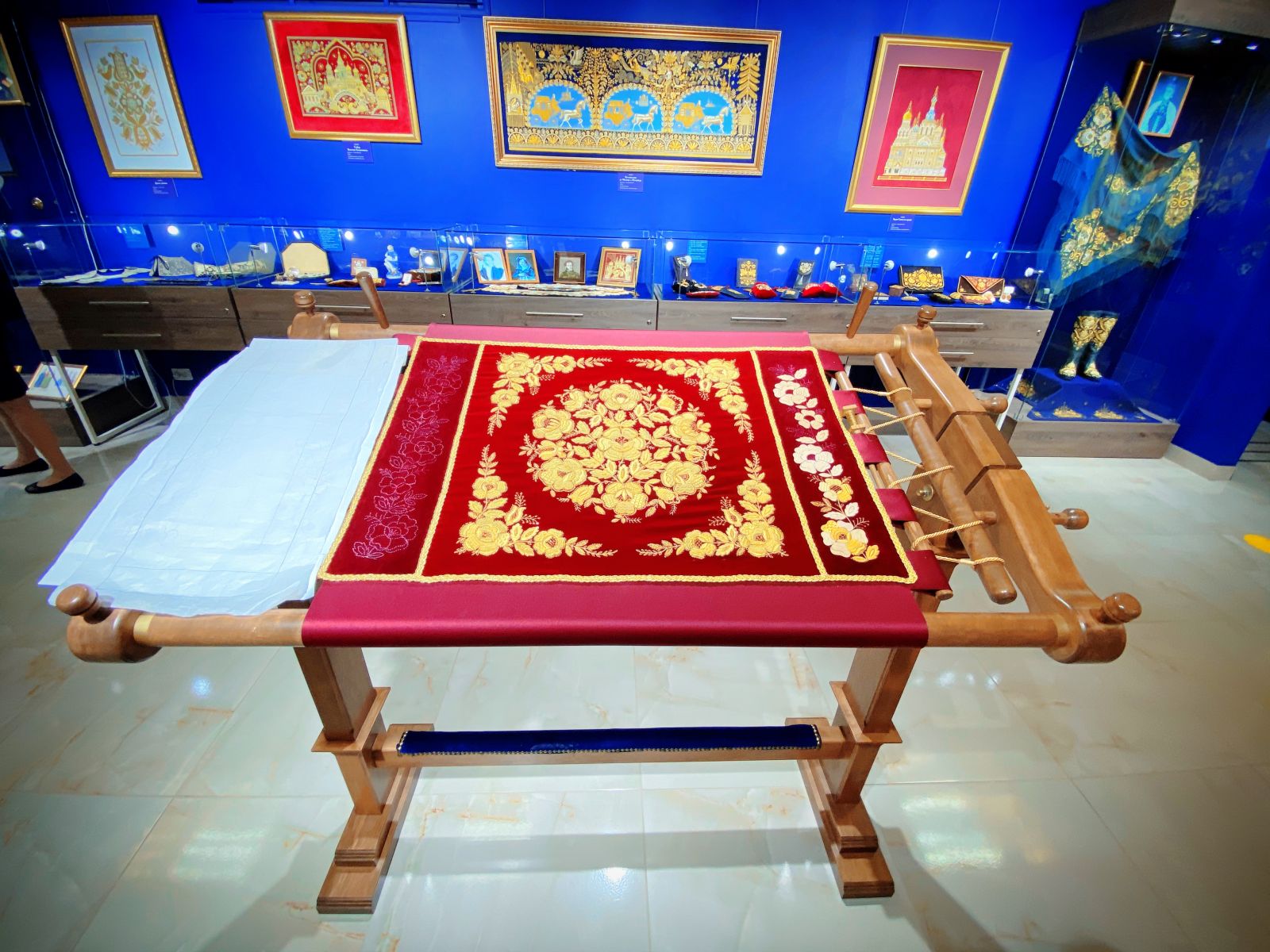 Помимо прекрасных картин, аксессуаров, одежды и других не менее прекрасных вещей, расшитых золотой нитью, мастерицы изготовили 12 метровый пояс. На самом большом поясе России вышита молитва, защищающая от всякого зла.