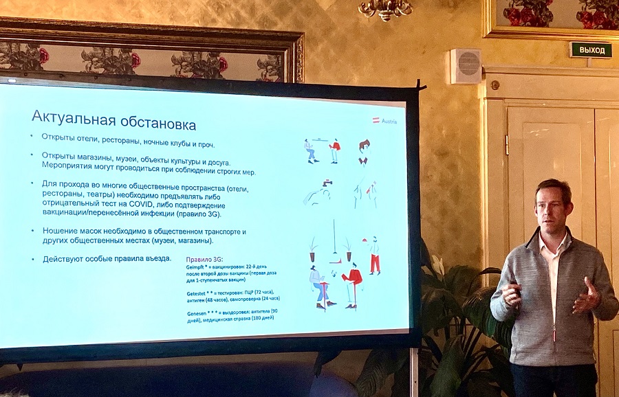 Австрия открыта для российских туристов. Об условиях въезда в Австрию и прохождения карантина рассказали на встрече в Санкт-Петербурге, которую для турфирм и отраслевых медиа организовало Австрийское представительство по туризму в России.