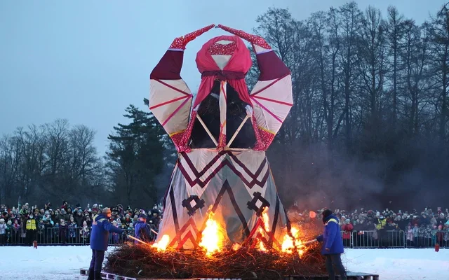 Кульминацией масленичных гуляний в Подмосковье станет сжигание 25 февраля самого высокого в России чучела Масленицы, установленного в музее-заповеднике «Горки Ленинские». На создание конструкции высотой 15,5 метров понадобилось три недели, 60 метров досок, 500 метров бруса и 78 метров ткани.