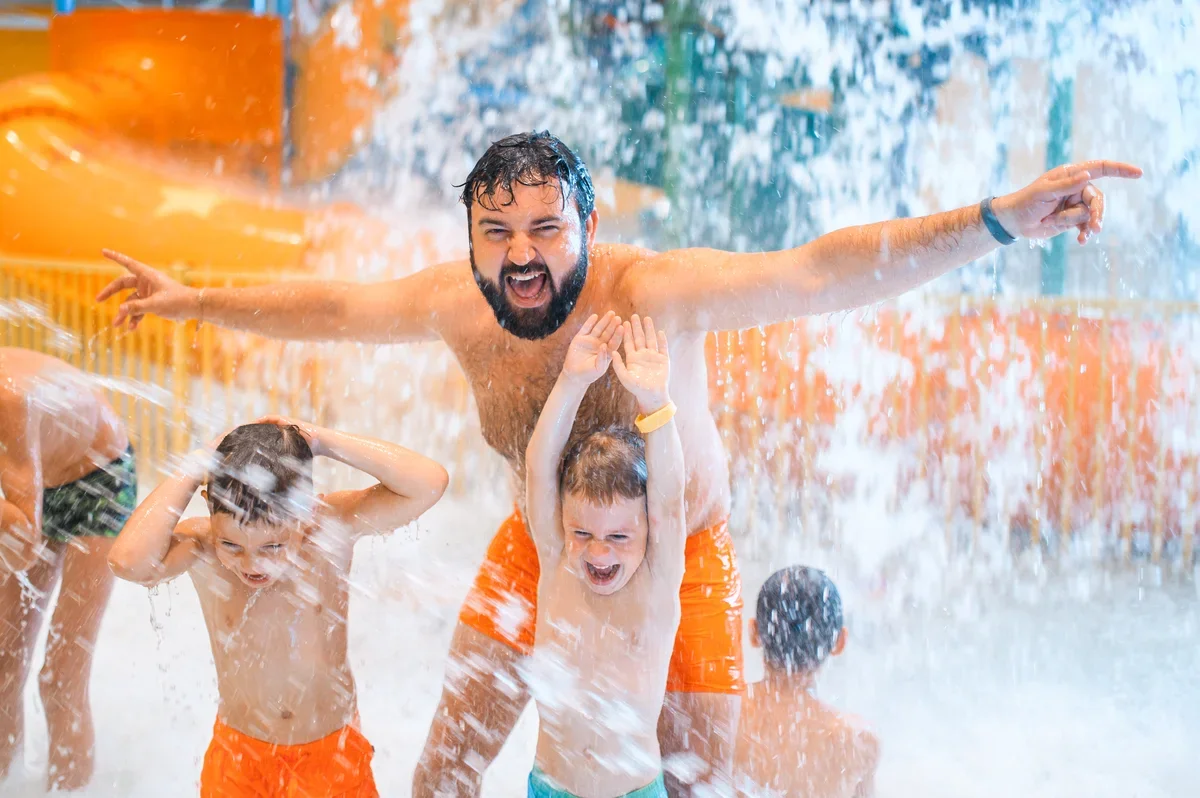 В аквапарке можно прокатиться на 16-метровых экстрим-горках или выбрать более спокойные варианты. Для маленьких посетителей есть анимационные горки.