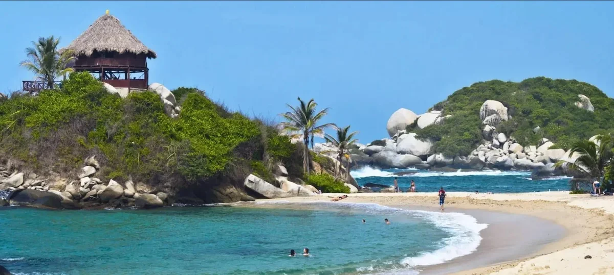 Кабо-Сан-Хуан-дель-Гиа, Колумбия (Cabo San Juan del Guía). Окруженные тропическими лесами золотые пески и кокосовые пальмы карибского побережья Колумбии идеальны, особенно на пляже Кабо-Сан-Хуан-дель-Гия. Это самый фотографируемый и узнаваемый пляж Колумбии.