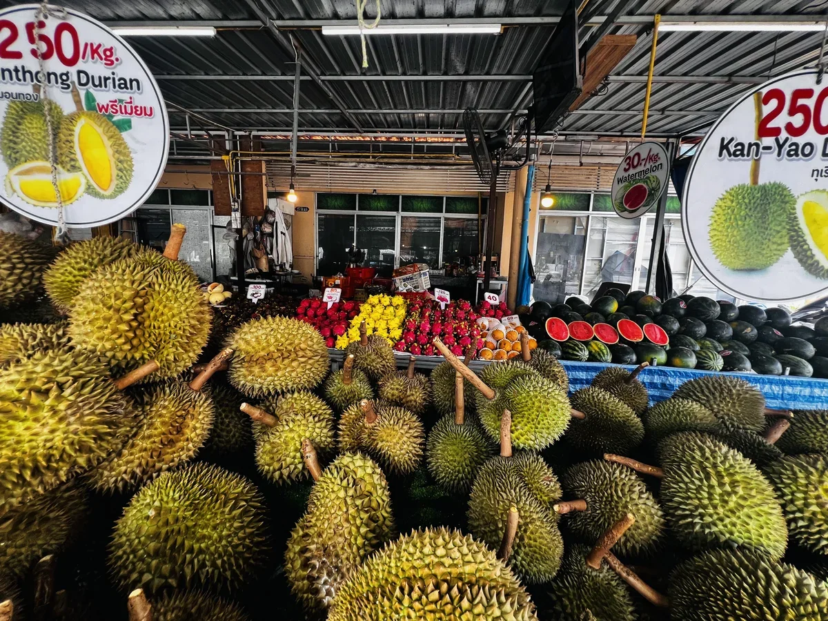 Раз пять мы покупали фрукты. В нашей корзине были манго, папайя, маракуйя, виноград, драконий плод. Тратили каждый раз в среднем 600 бат (≈1500 руб.). Для примера: манго стоит 70-80 бат (≈170-190 руб.) за 1 кг, маракуйя – 80 бат (≈190 руб.) за 1 кг, а виноград – 399 бат (почти≈1000 руб.) за 1 кг. За 5 походов во фруктовую лавку – 3 тыс. бат, или меньше 8 тыс. руб.
