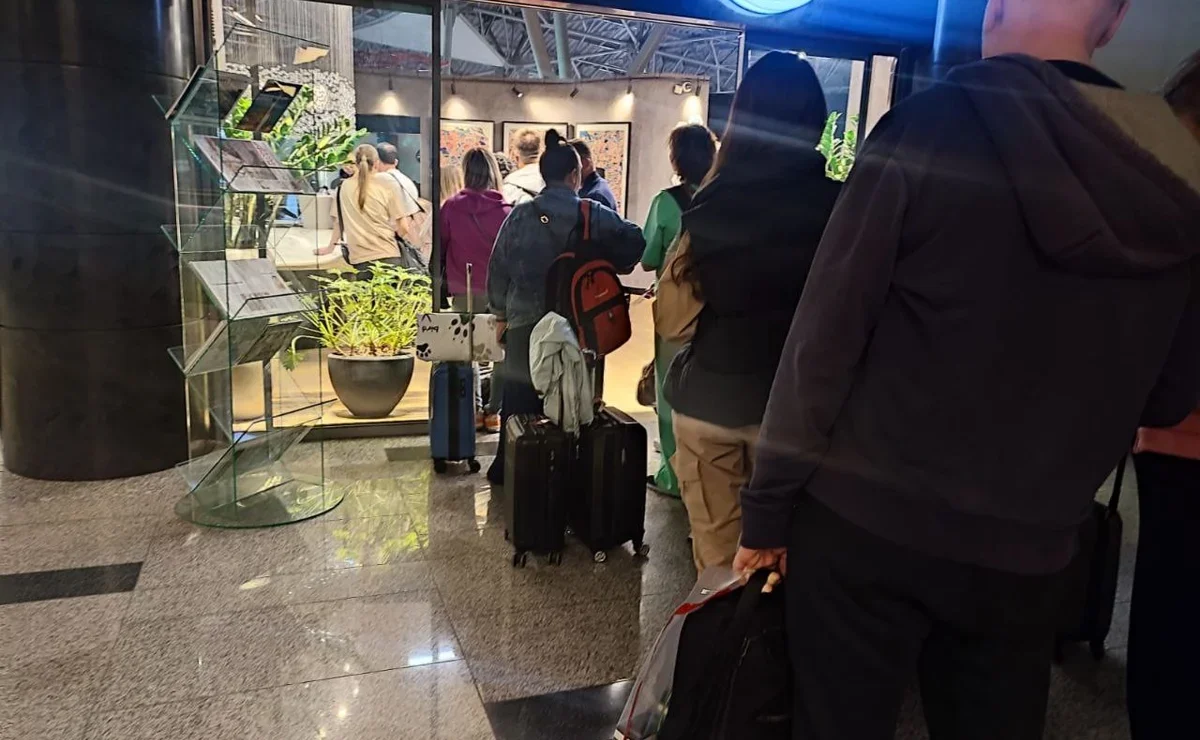 «Впервые столкнулся с тем, что в лаунж стоит очередь… Во-вторых, очередь просто не двигалась. Первые люди в очереди стояли в ней 1.5 часа (!), но так и не зашли. Из очереди постоянно выходили люди, чью посадку уже объявили. Из самого лаунжа пассажиры тоже выходили… Ну и в-третьих, при всем этом великолепии… в лаунже просто не было еды! «Счастливчики», что успели пройти постоянно сновали туда-сюда с пакетами из БургерКинга, где комбо стоит по €20».