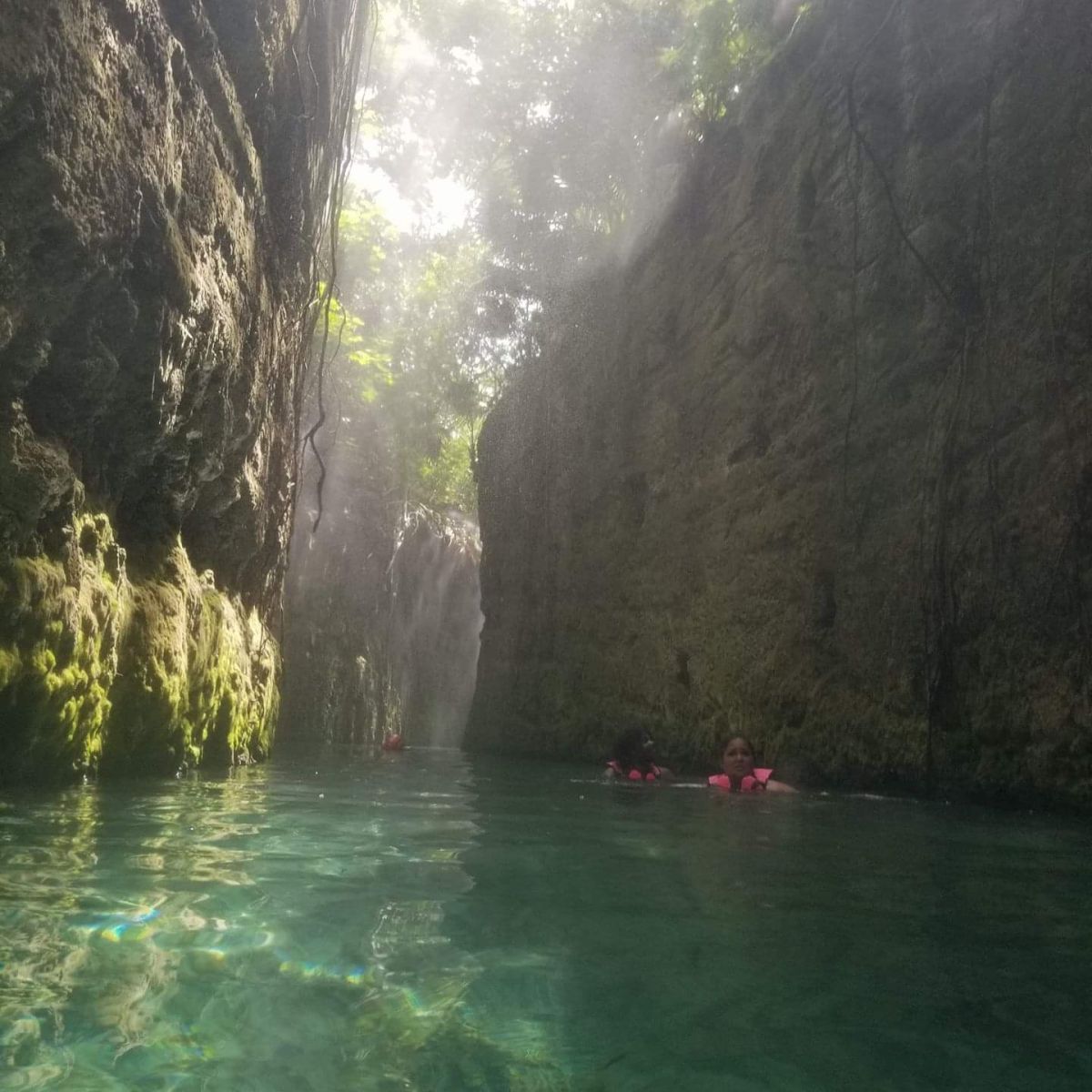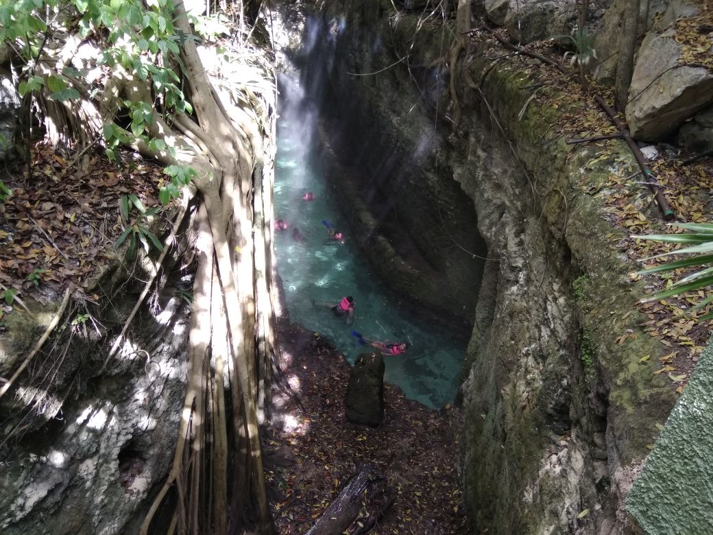 Самый впечатляющий из них – это 45-минутный сплав по реке, протекающей внизу «ущелья». Он проходит без лодок: надев спасательные жилеты, которые отлично держат вас на воде, вы спокойно проплываете мимо потрясающих пейзажей каньона, наблюдая его снизу, через водопады и красивейшие подземные тоннели. Не повторяйте наших ошибок: возьмите с собой налобную или наручную экшн-камеру, чтобы всю эту красоту запечатлеть на фото и видео (мы, увы, забыли это сделать).