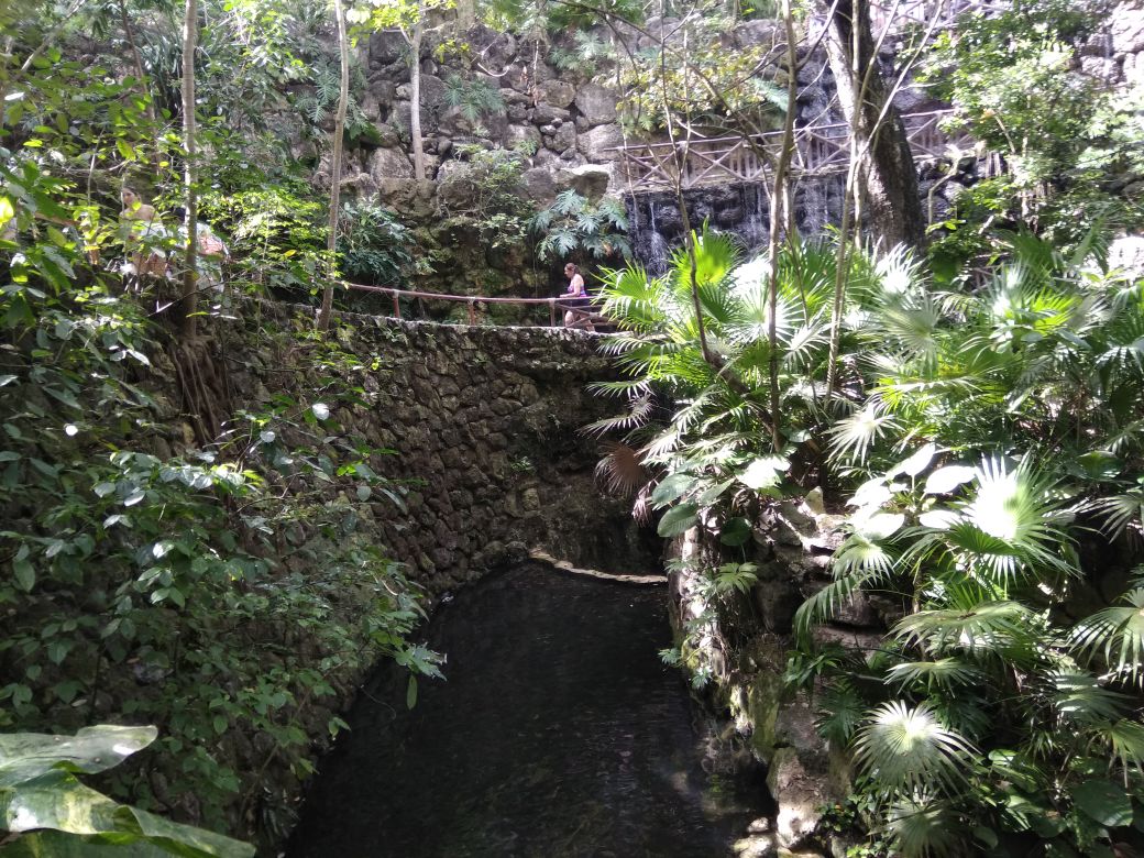 Туристы попадают из одной зоны парка в другую, проходя по каменным туннелям в стенах и под сводами причудливых «крепостных» арок, увитых лианами: места для романтических фото предостаточно.