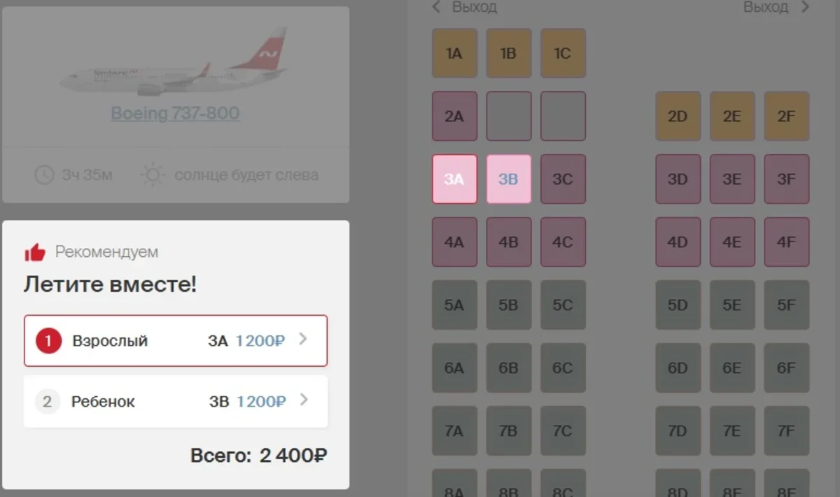 Более того, у «Аэрофлота», например, выбор места для взрослого пассажира – участника бонусной программы – оказался в два раза дешевле, чем для ребенка в том же бронировании.