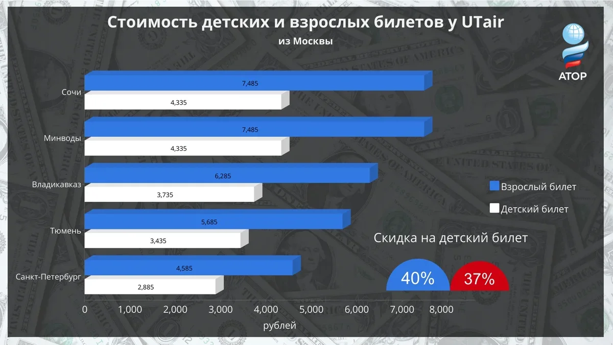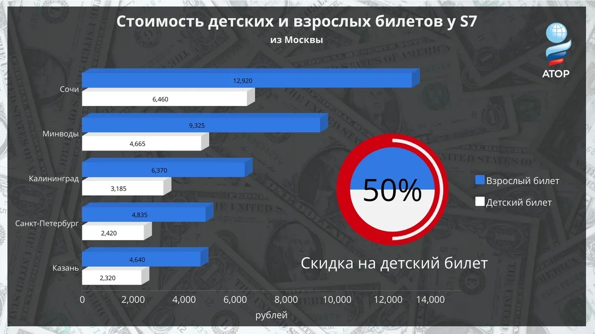 Однако в 30% случаев «детский» билет все же отличается от взрослого менее чем в два раза и составляет от 60% до 70% его стоимости.