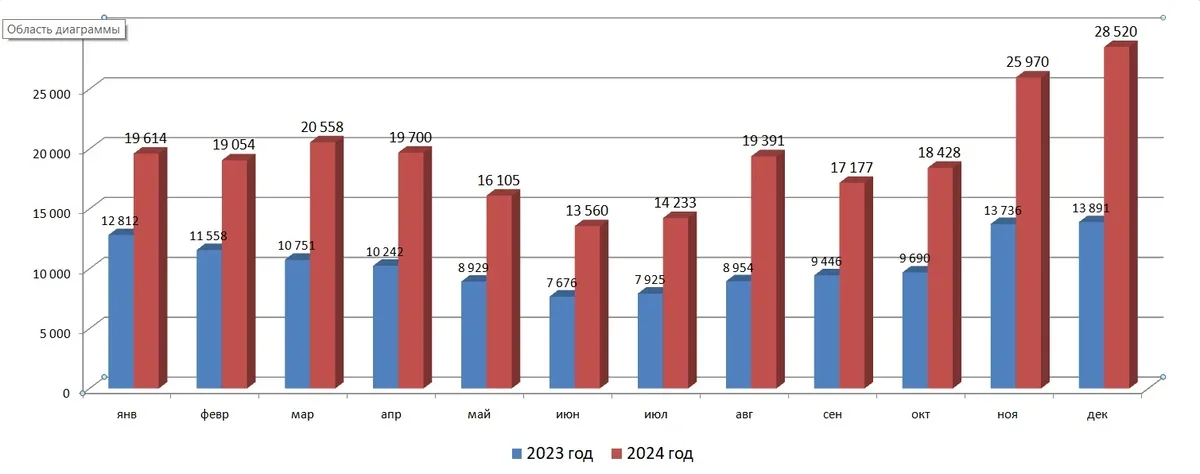 Помесячно российский турпоток в 2024 и 2023 годах распределился так, как на рис. ниже. Наиболее популярные месяцы для отдыха во Вьетнаме у россиян – с октября по февраль, низкий сезон (наименьшее количество прибытий) – с мая по июль.