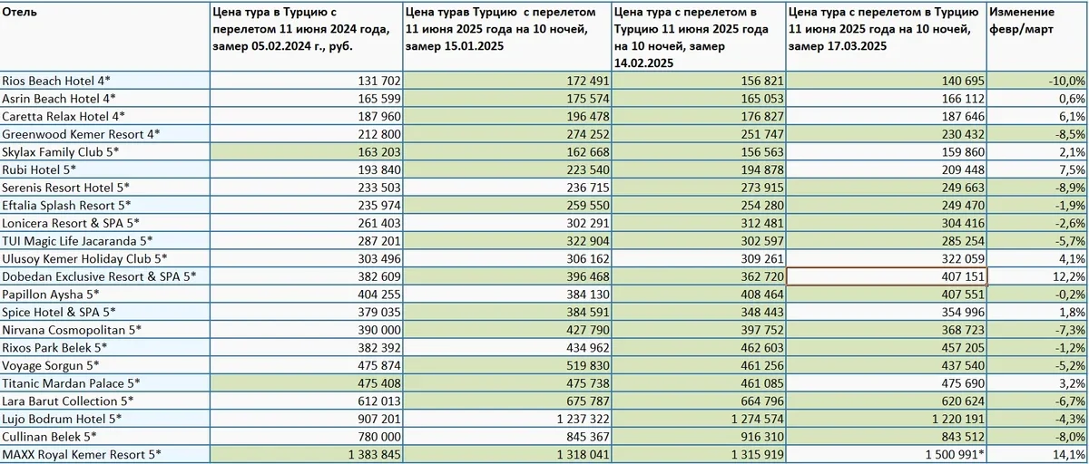 Как изменились цены на Турцию в середине марта по сравнению с серединой февраля