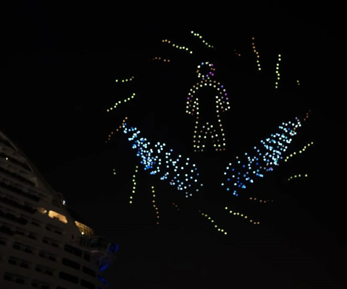 Гостей и просто зрителей поразило очень эффектное и ультрасовременное лазерное шоу, которое проецировалось на корпус лайнера, грандиозное шоу дронов, выступление итальянского певца Маттео Бочелли и фейерверк.