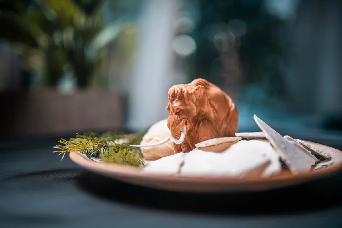 В новом ресторане «СибирьСибирь» кроме сытных блюд с северным колоритом можно попробовать эффектный десерт «Мамонт», который подают на льдине из безе в облачке дыма из жидкого азота.
