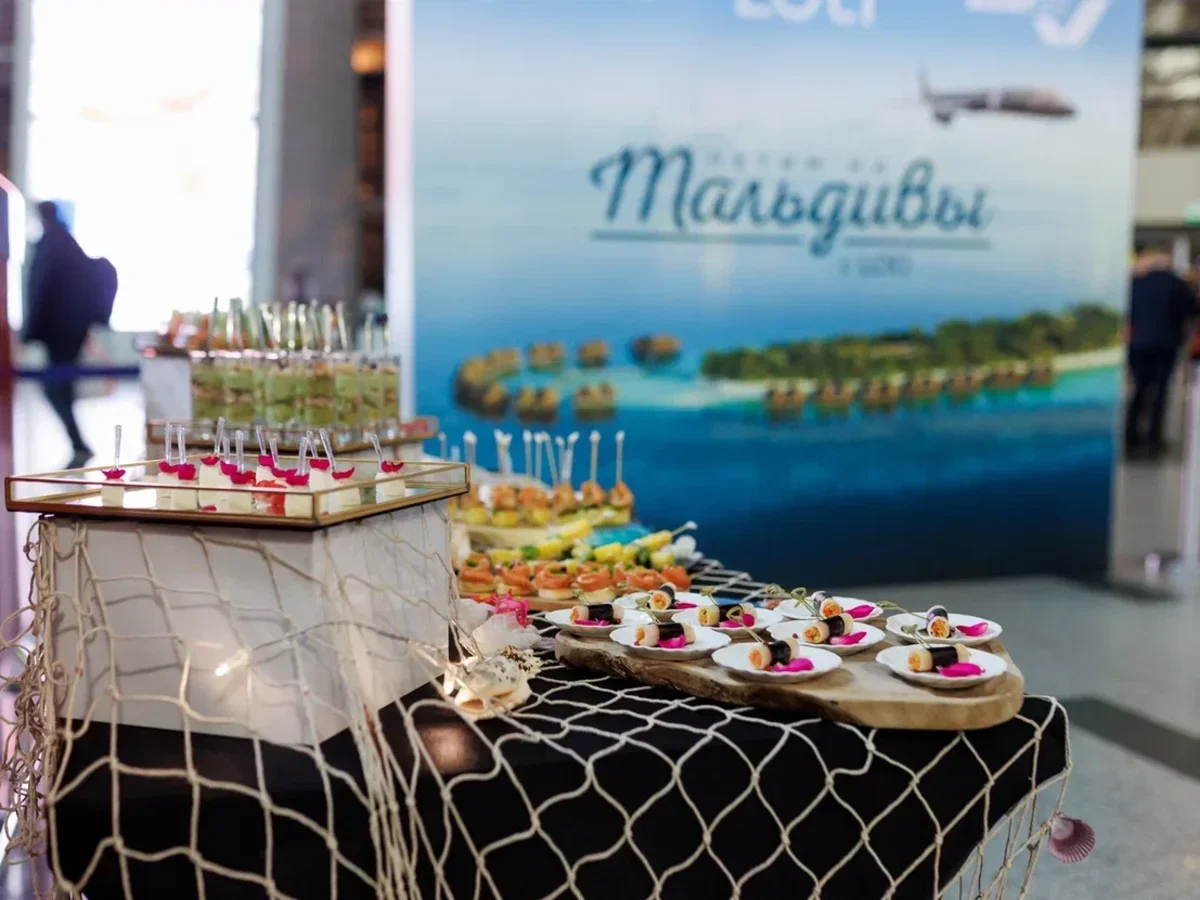 Старт полетной программы BlackJet на Мальдивы прошел в торжественной обстановке. Пассажиров первого рейса угощали шампанским и легкими закусками.