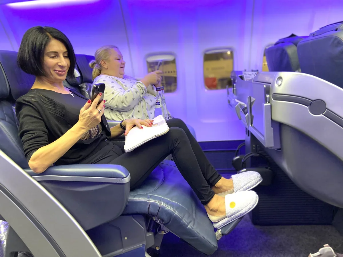 Тапочки – отдельный релакс: по отзывам пассажиров, в них словно «в мягком облачке». «Я много летаю по бизнесу и на отдых. Ничего подобного раньше не встречала. Просто кайфую», — говорит москвичка Ирина.