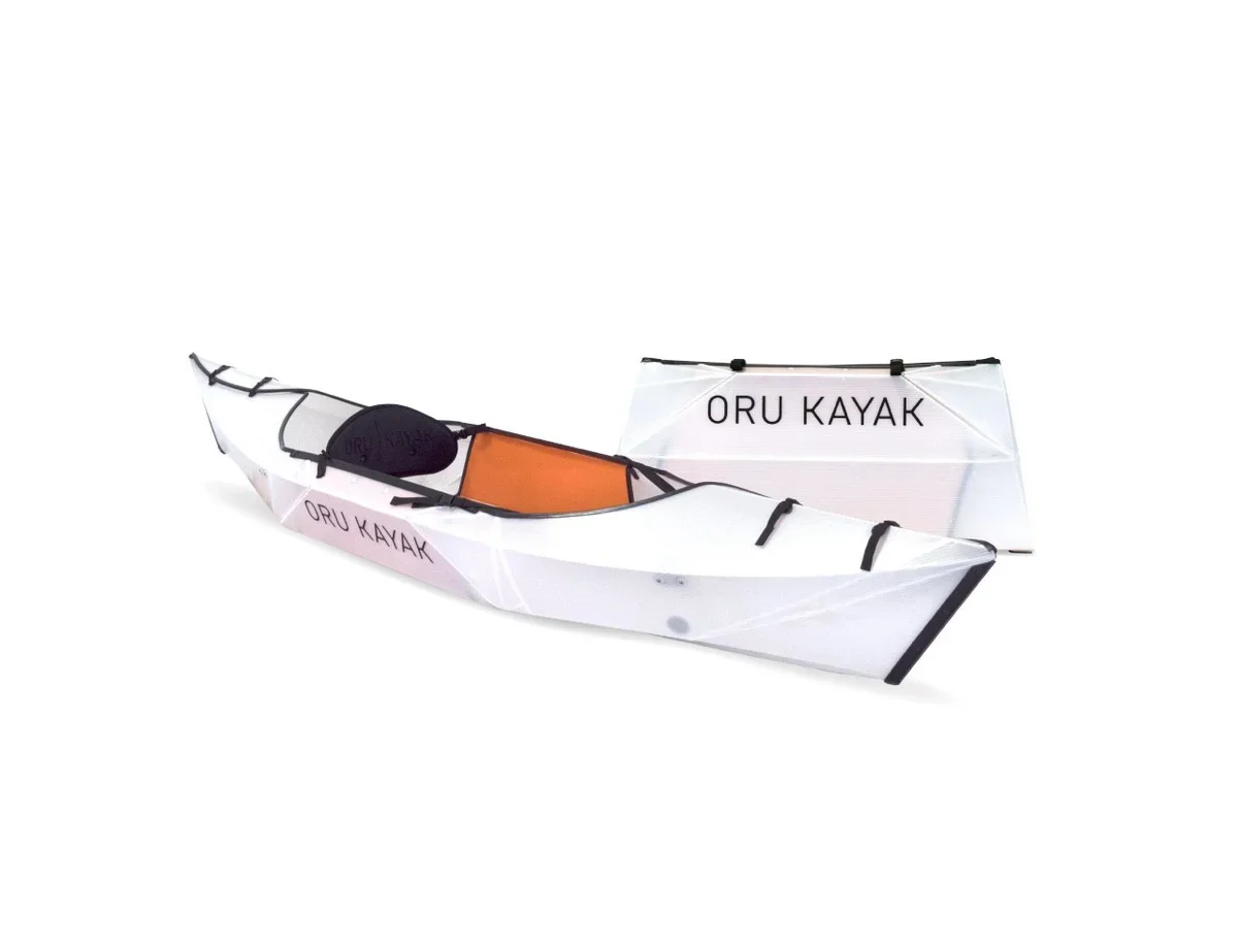 Еще одно транспортное средство – Oru Kayak Inlet – прочный каяк, складывающийся до размеров большого чемодана. Его удобно переносить и перевозить. Вес каяка - 9 кг, его можно разложить за 5 мин: распаковать, затянуть крепления и установить сидение. Задняя часть лодки усилена для большей жесткости, в каяке уже есть встроенный пол, регулируемая спинка и подставка под ноги. Лодка изготовлена из экструдированного, обработанного ультрафиолетом пластика, который достаточно долговечен в использовании.