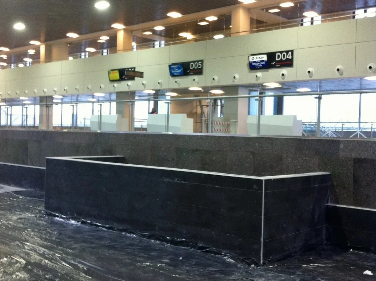 Новый терминал должен был открыться в этом месяце, но что-то пошло не так. И на данный момент там только начинается монтаж стеклянных панелей фасада, пишут местные СМИ. Терминал готов только на 70%.