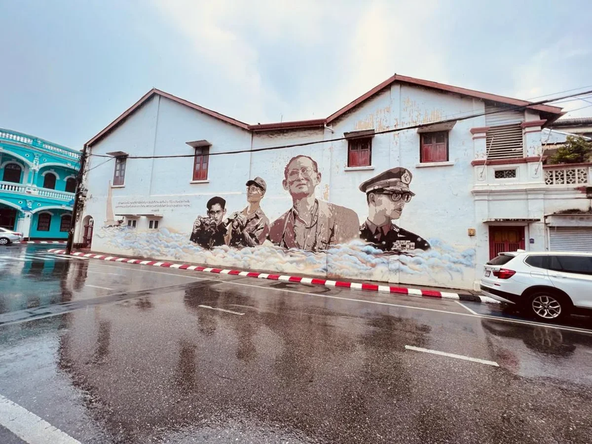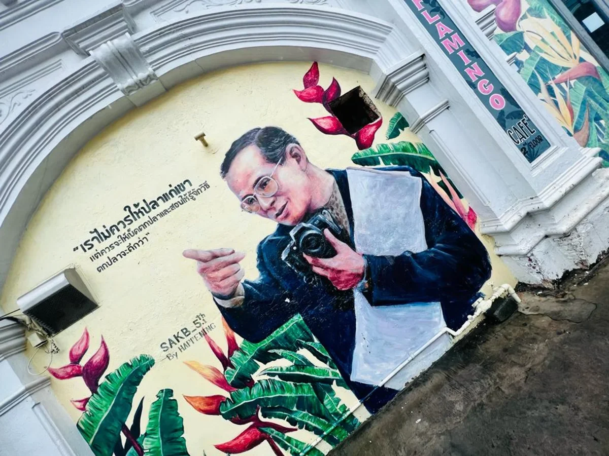А на пересечении улиц Яоварат и Дибук (Dibuk Road) есть потрясающие рисунки, посвященные Королю Раме IX. Король очень любил фотографировать, потому изображен на картине с фотоаппаратом. Изобразила Раму IX группа пхукетских художников из 4Studio.