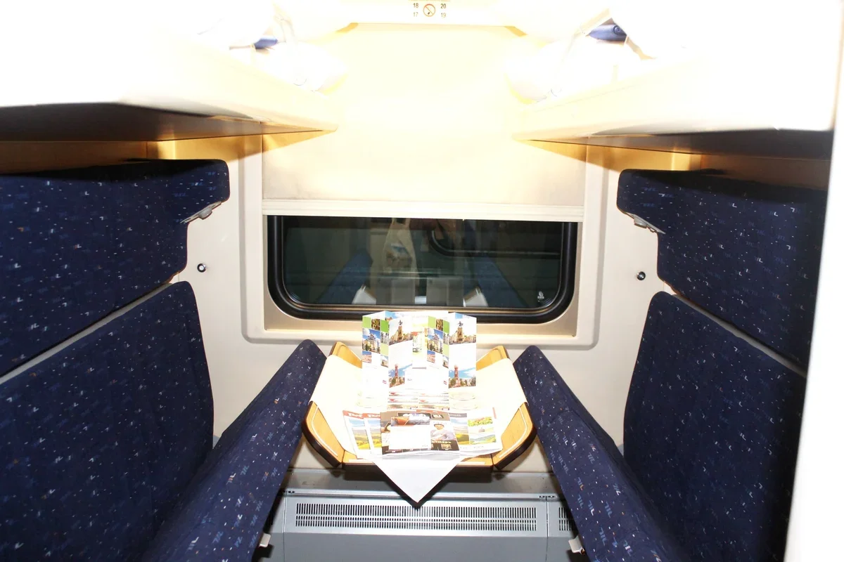 Купе оснащены розетками с USB-разъемами для зарядки гаджетов и развлекательной системой, где загружены фильмы и есть необходимая информация по маршруту.