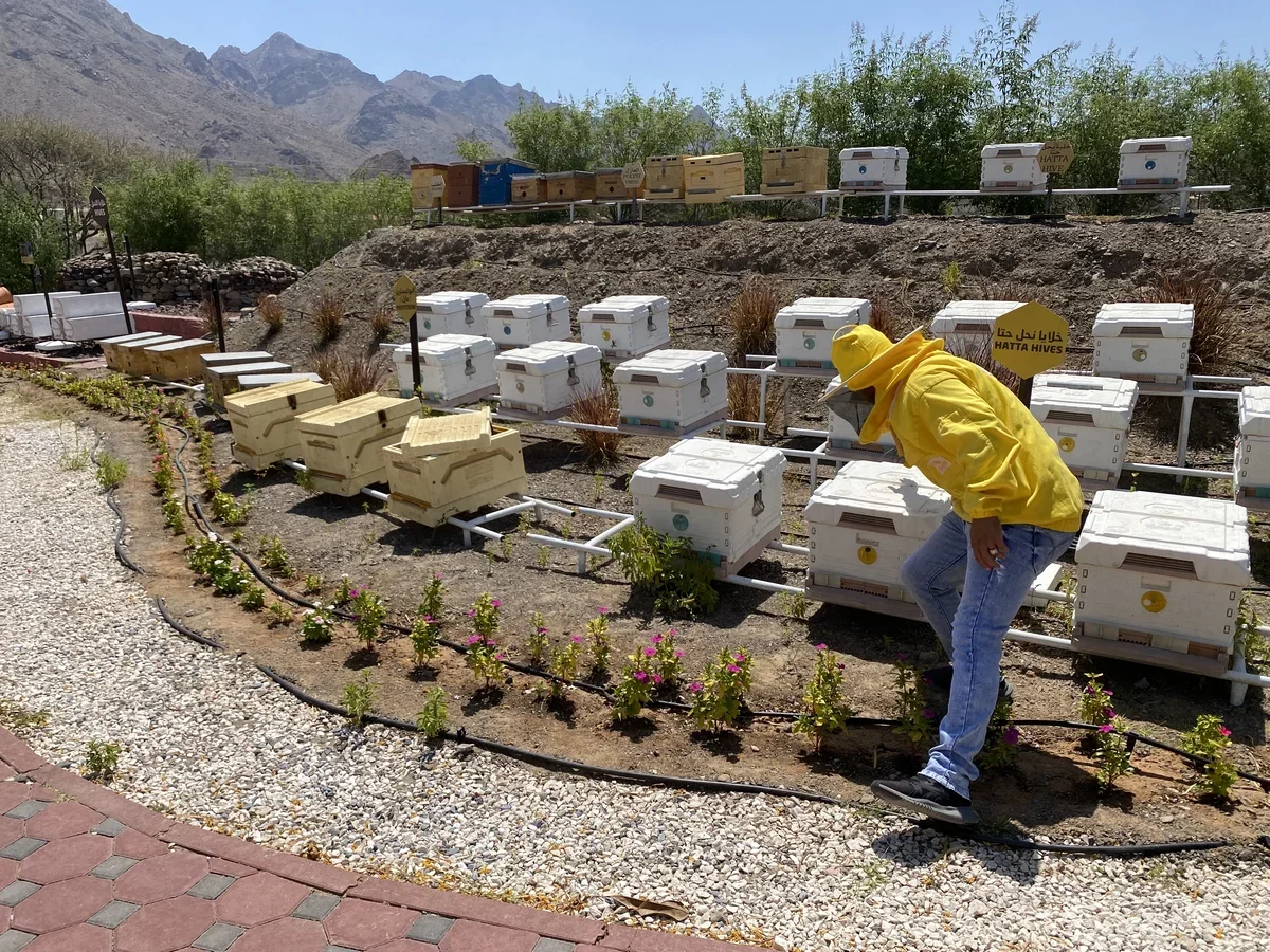 На пасеке, расположенной на 16 тыс. кв. м находится около 300 ульев. В них не только местные пчелы, но и те, которых привозят из других арабских стран, стран Европы. Иностранные пчелы проходят здесь адаптацию, в лабораториях изучается их возможность жить и производить мед в природных условиях ОАЭ.