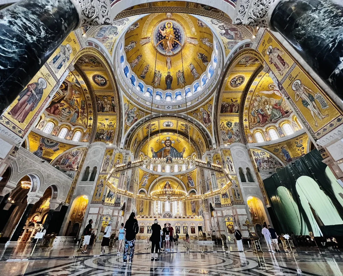 Собор поражает величием архитектуры и внутренним интерьером – стены украшены яркой мозаикой. А рядом с храмом разбит красивый парк.