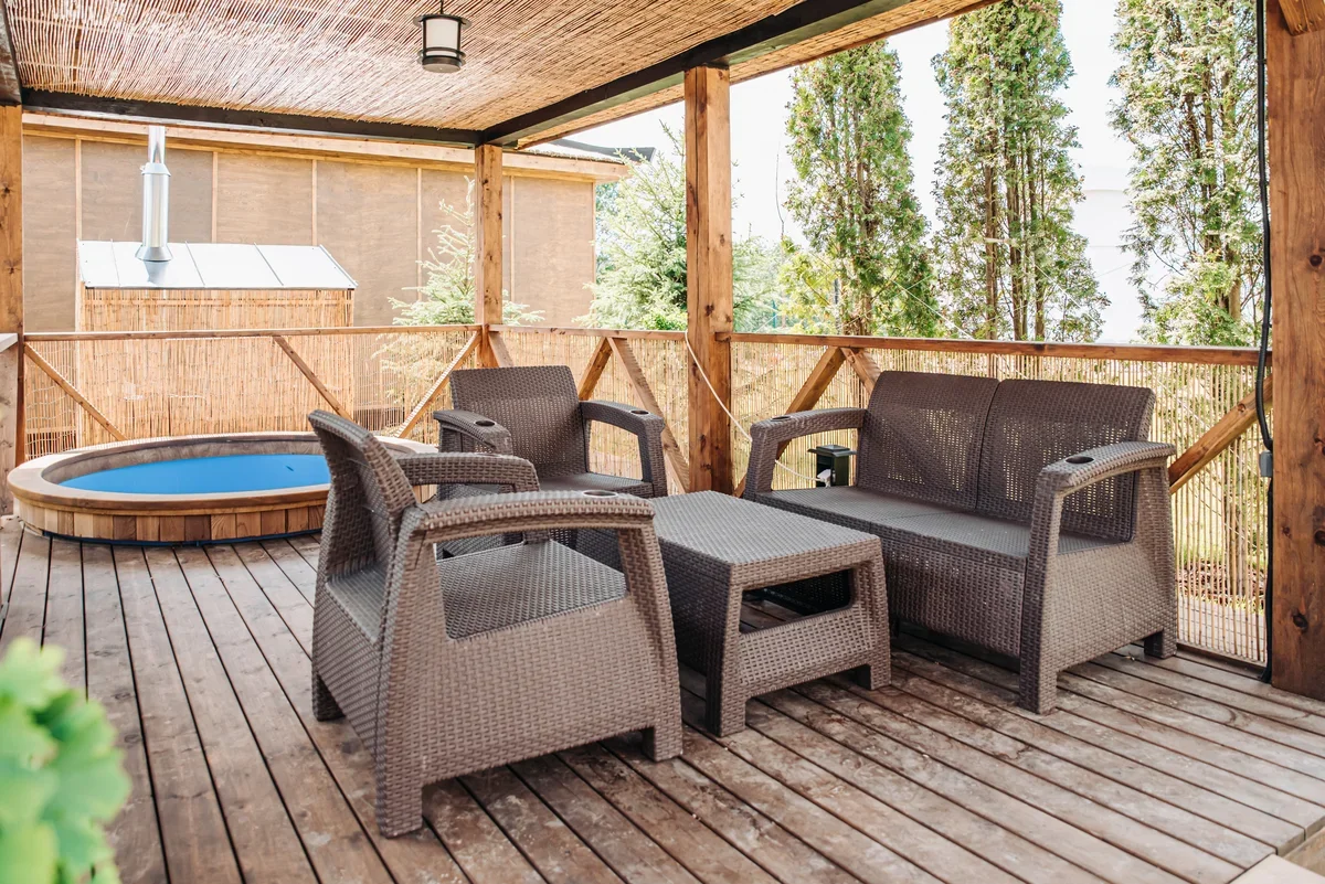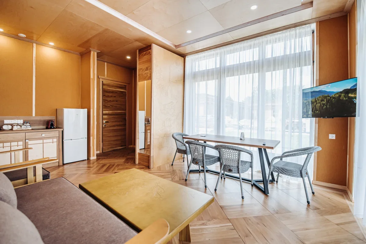 Создатели концепции интерьеров отдельно подчеркивают, что в оформлении номеров использованы девять дорогих и редких пород деревьев, включая дальневосточный ильм. Это делает виллы неповторимыми с точки зрения дизайна.