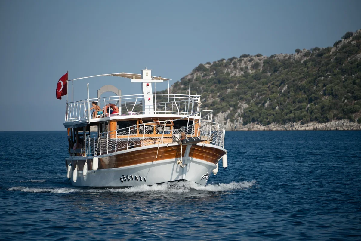 На завершение вечера – прогулка на кораблике из Демре, вдоль острова Кекова. По дороге видим руины древних поселений и даже небольшой затопленный поселок, купаемся в невероятно прозрачной воде.