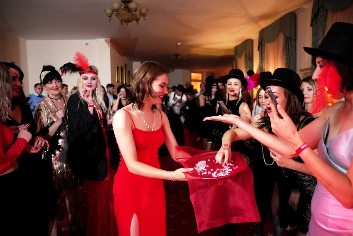Феерические наряды дам и джентльменов, равно как и другие элементы стилистического оформления площадки праздничного вечера, словно перенесли участников в прошлое – прямо во времена буржуазных кутежей Парижа конца XIX века.