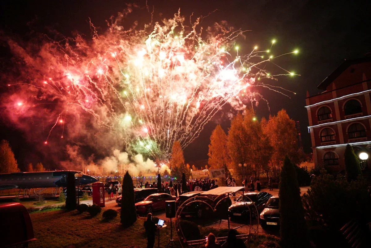 Завершением вечера стал огромный праздничный торт и вызвавший бурю восторгов красочный фейерверк в ясную лунную ночь.