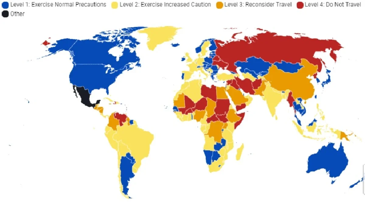 ГОСДЕП США В ПРИНЦИПЕ НЕ РЕКОМЕНДУЕТ АКТИВНО ПЕРЕМЕЩАТЬСЯ ПО МИРУ