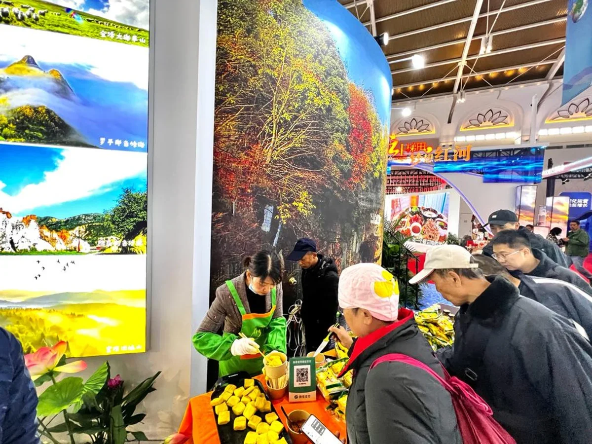 У провинции Юньнань отдельный зал, там тоже очень людно. Идет оживленная торговля украшениями, поделками, сладостями, многочисленные розыгрыши, дегустации.