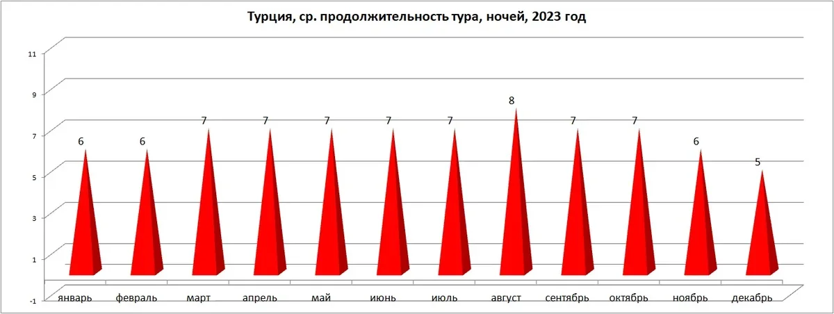 Турция, ср. продолжительность тура, ночей, 2023 год.