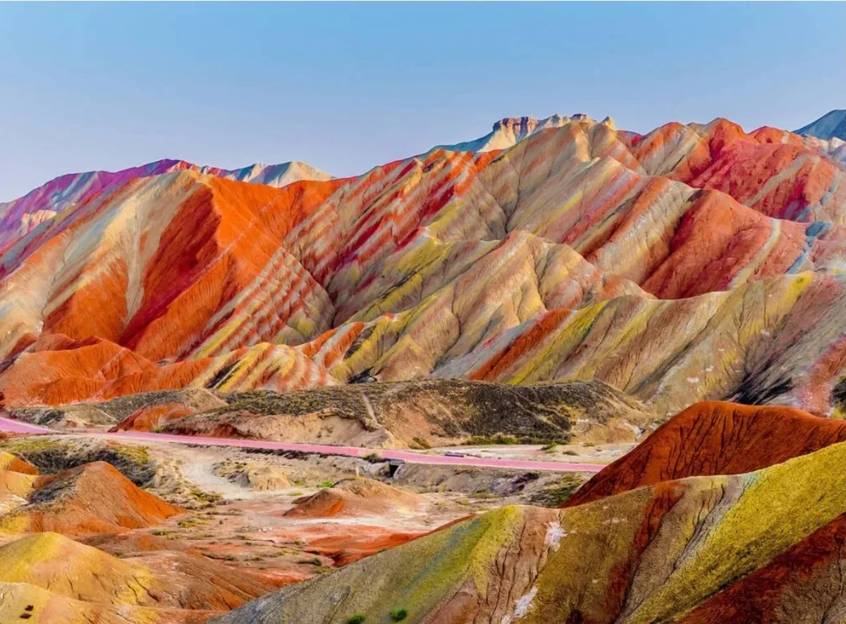 Чжанъе Данься (Zhangye Danxia), Китай. Цветные горы появились благодаря причудливым перемещениям месторождений полезных ископаемых на протяжении тысячелетий. Полюбоваться на эту красоту можно с нескольких смотровых площадок.